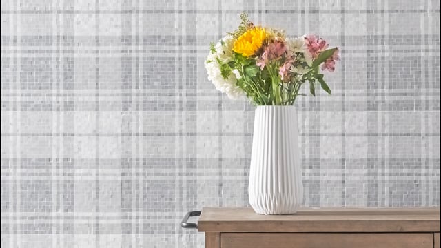 A modern take on a timeless plaid pattern. This marble mosaic is a stunning blend of a bold sapphire art glass combined with the coveted marble stones, Carrara and Thassos, becoming the perfect material for a statement-making backsplash or accent wall.